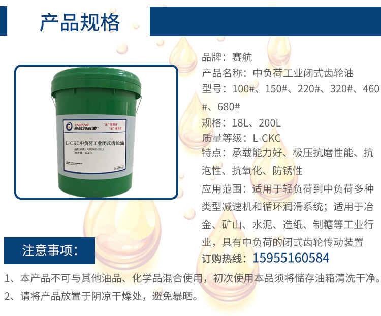 中負荷工業齒輪油采用深度精制的高粘度指數石蠟基基礎油及頂級極壓,抗磨,抗氧,防腐,防銹等多種添加劑,經精心平衡配方,先進的生產工藝調制而成。