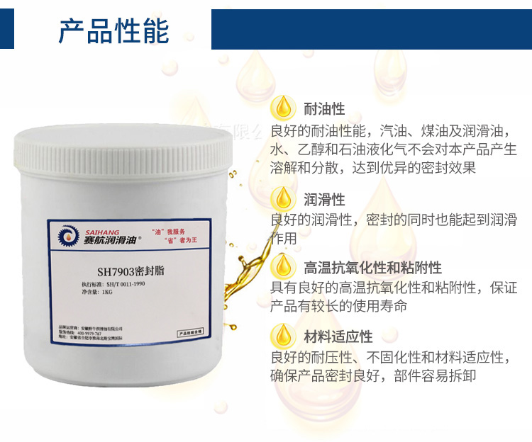 7903密封脂以無機稠化劑稠化合成油,并加入抗氧、防銹等高效添加劑,經特殊工藝精制而成。主要適用與汽油、煤油、潤滑油、水、乙醇和石油液化氣等介質接觸的機械設備、機車、管道、閥門等靜密封和低速滑動、轉動密封面的密封和潤滑;也適用于燃氣管、燃氣閥、輸油輸氣管道等設備連結部位的密封和潤滑;