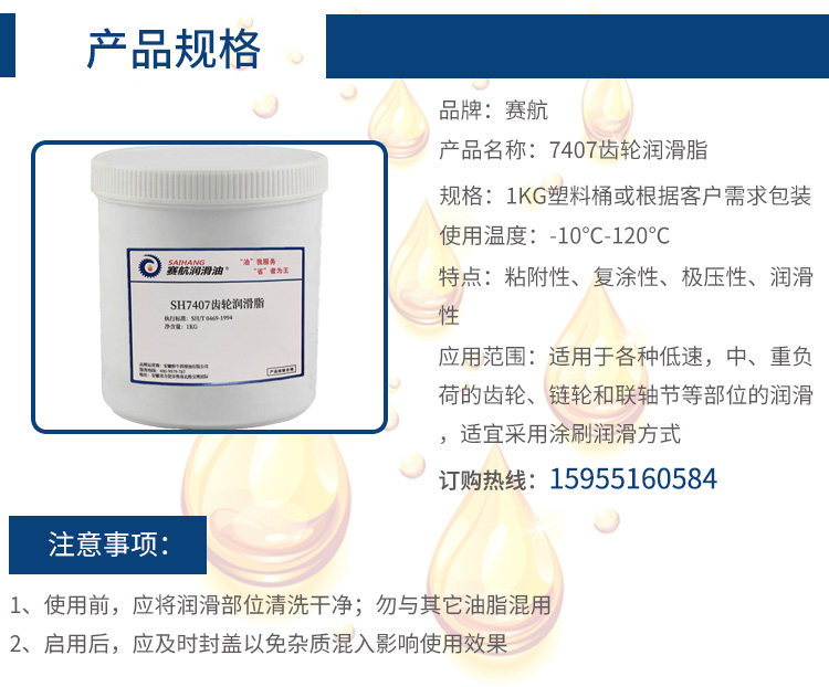 7407號(hào)齒輪潤滑脂是以復(fù)合皂基稠化劑稠化半合成油,并加有抗氧、極壓等多種添加劑精制而成;適用于各種低速,中、重負(fù)荷的齒輪、鏈輪和聯(lián)軸節(jié)等部位的潤滑。