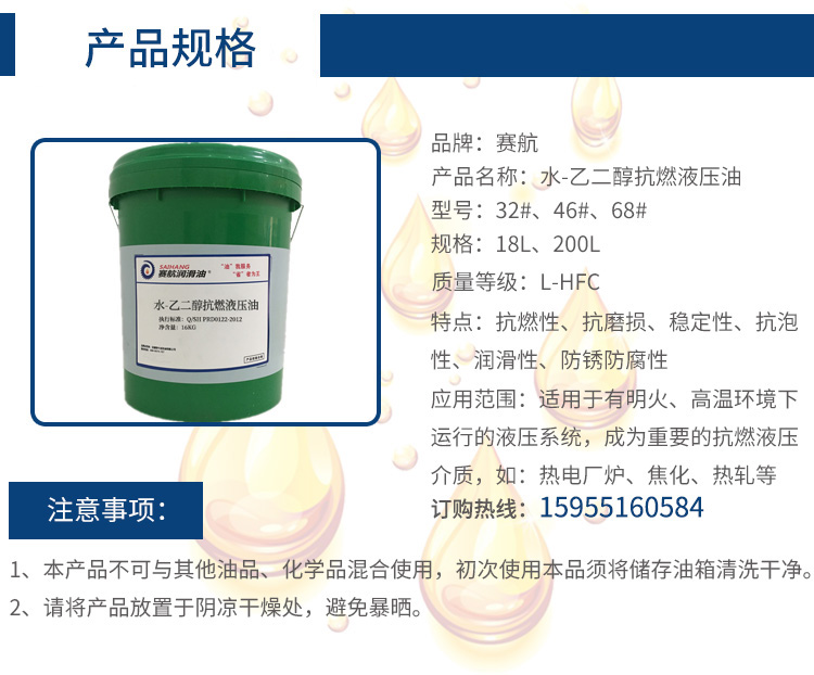 水—乙二醇抗燃液壓液是以水和乙二醇為基礎液,并加有抗磨劑、抗氧劑、防銹劑、抗泡劑等多種添加劑精制而成。按標準分類屬ISO-L-HFC類的水-乙二醇型不燃液壓油。