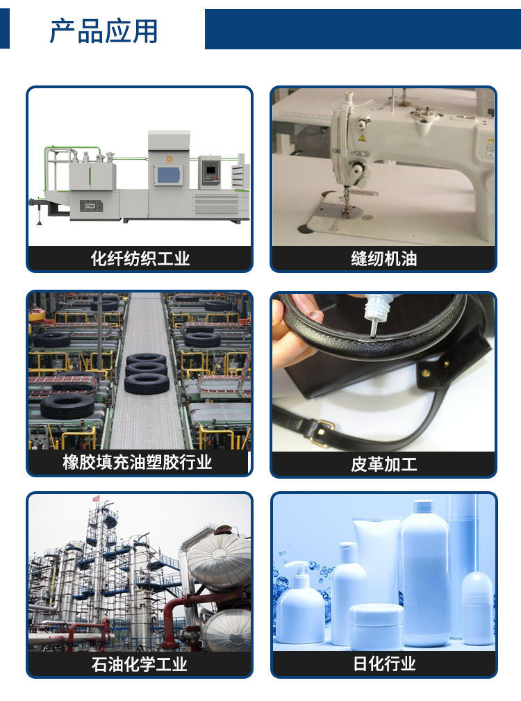 用途∶ 白油用于潤(rùn)滑油加工生產(chǎn),日用化妝用品、紡織化纖平滑劑用油、鋁材加工、橡塑增塑、合成油基礎(chǔ)油、塑料母料用油、縫紉機(jī)油,塑料編織袋用油等。白油可用于防粘、脫膜、消泡、密封、拋光和制藥機(jī)械的防腐潤(rùn)滑等。
